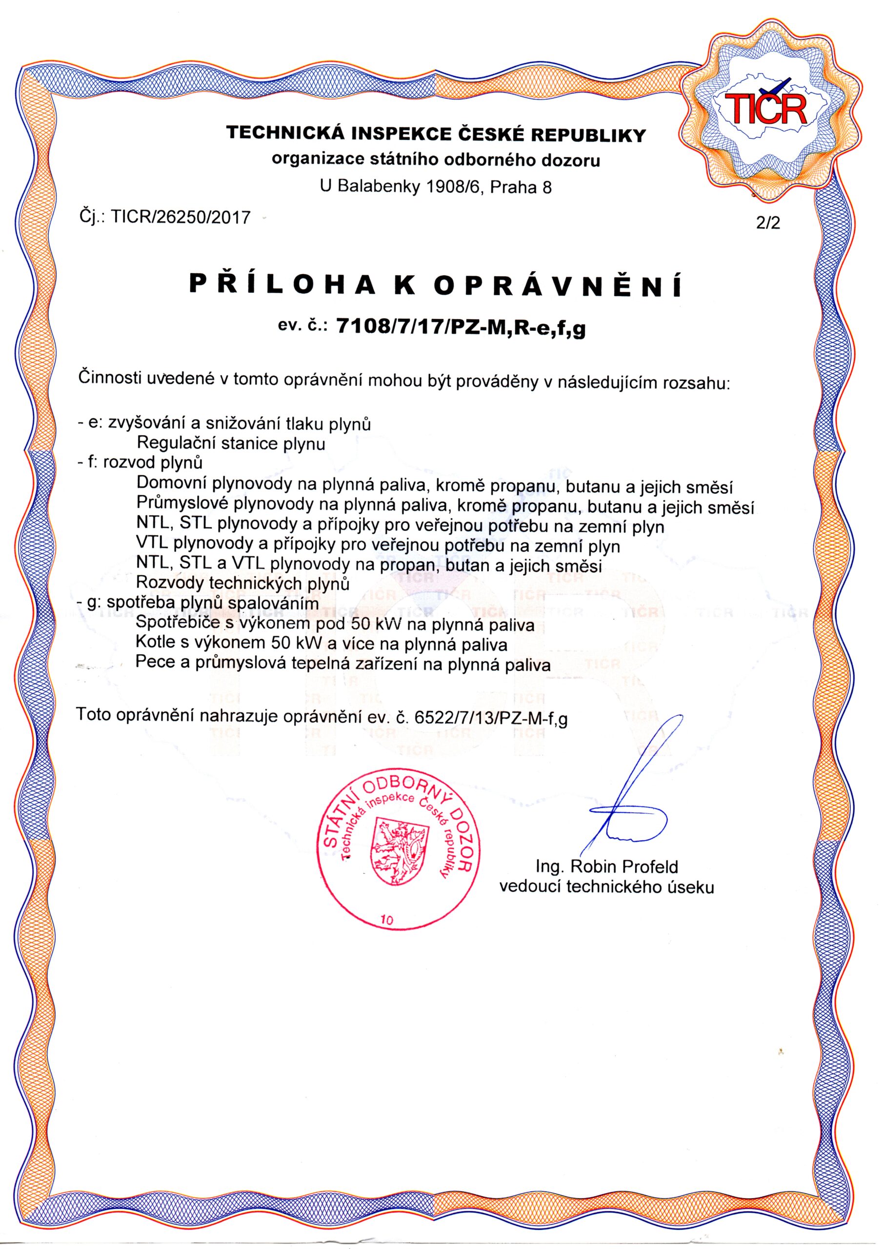 „Pan Ing. Jan Nohava v našem domě provádí revize plynových rozvodů pro 40 bytových jednotek, revize plynových a tlakových zařízení a odbornou prohlídku v plynové kotelně.